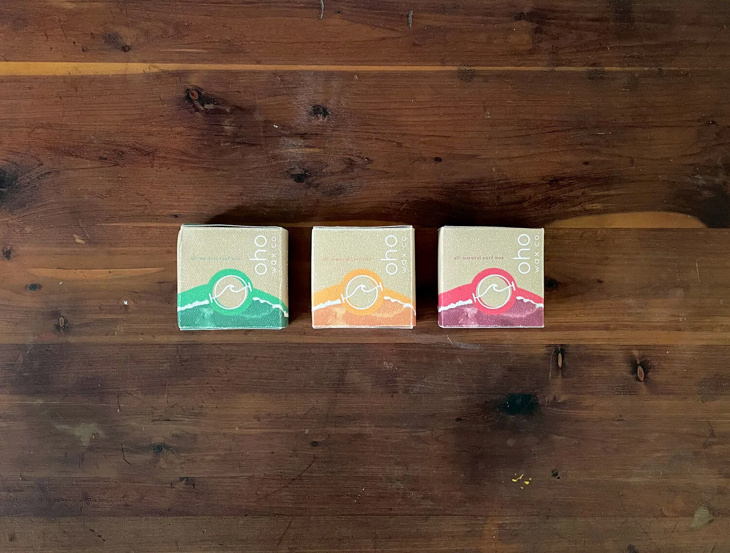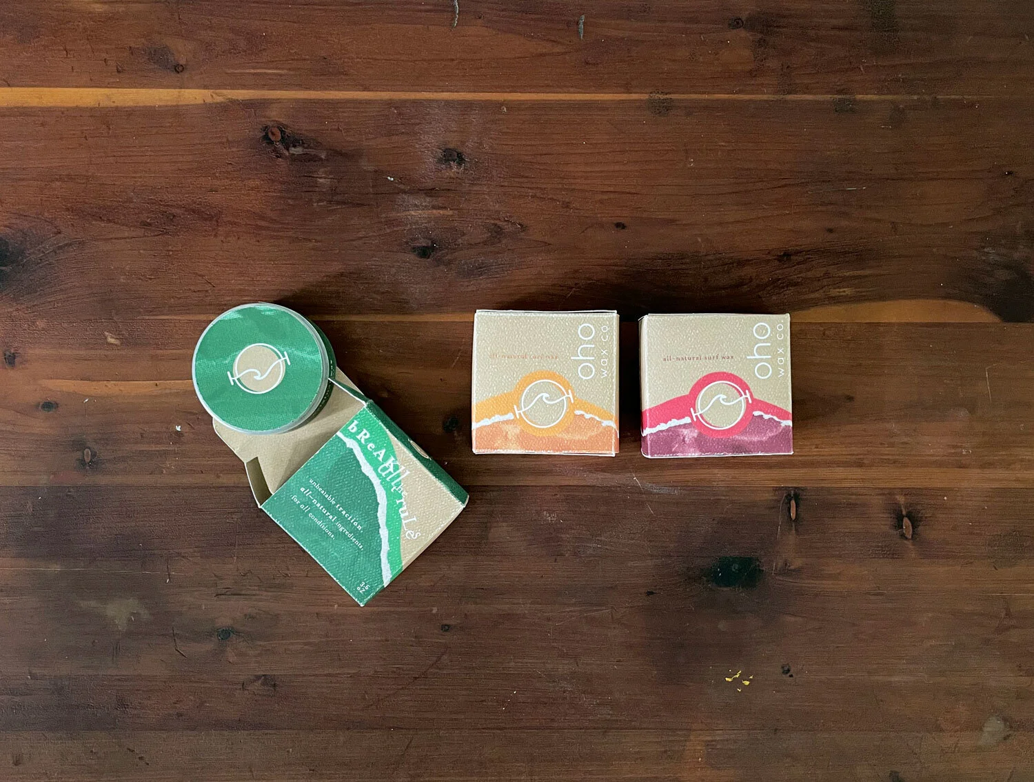 Oho Wax Company is easygoing, low-key, and carefree with a side of tradition. It calls back to the roots of surfing with a focus on connection between the athlete and the ocean. This project was my first attempt at environmentally-conscious packaging. While there’s plenty that I would change about it now, it sparked an important interest in me for products and packaging that go the extra mile.