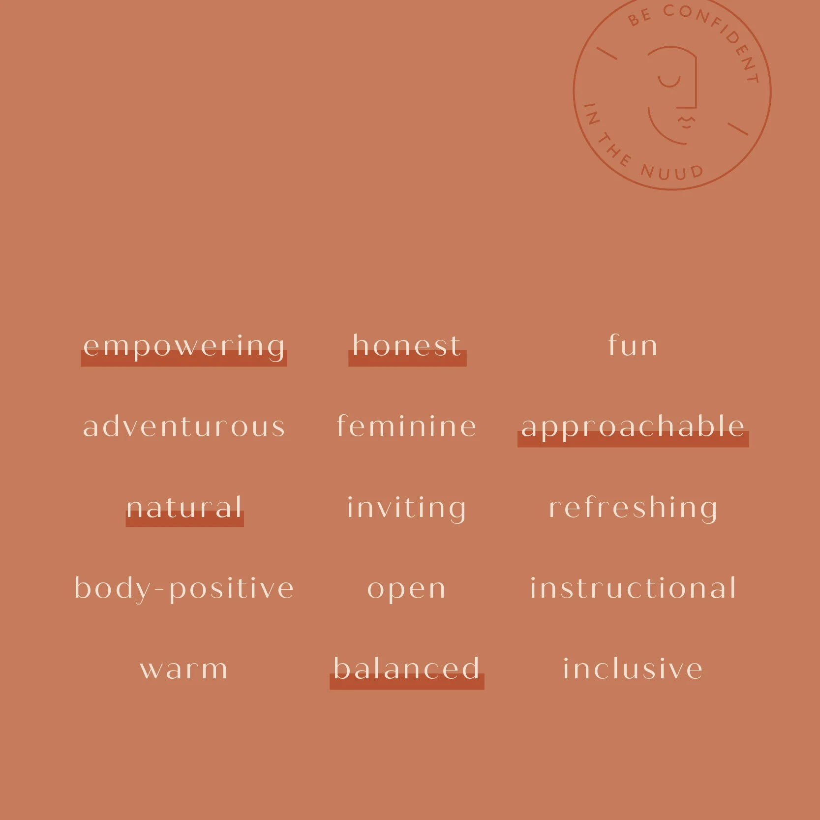approachable. balanced. honest. empowering. natural.