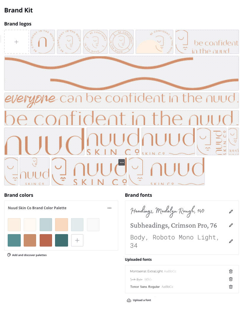 She has her entire brand identity—logos, colors, typography (with a cheat sheet!), and illustrative elements—at her fingertips. She can create and schedule content or post on the fly with confidence that her content is putting Nuud Skin Co’s best foot forward.